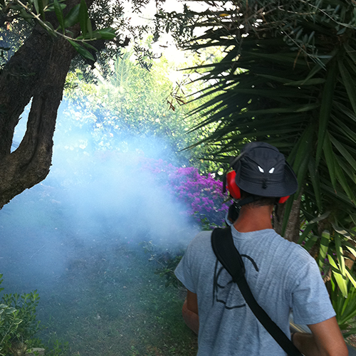 Данная обработка, которую необходимо осуществлять регулярно с целью прерывания цикла размножения насекомых на взрослой стадии, позволяет уничтожить особи, находящиеся в зеленых массивах. Она производится на всей территории объекта, а также в зонах наибольшего присутствия человека - террассах и бассейнах.